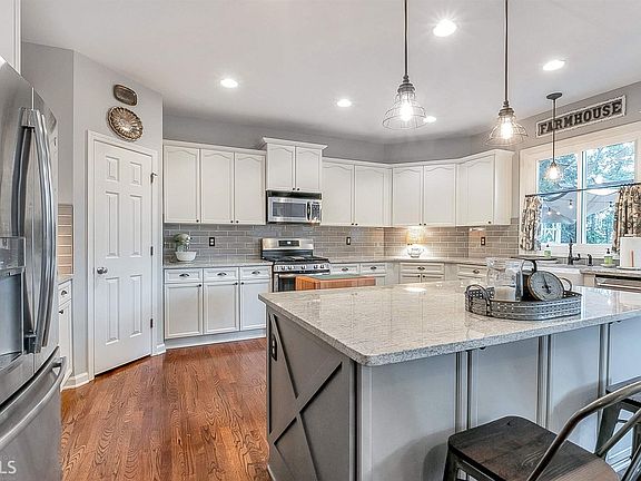 Impossible to find Master On Main Home, in sought after Ellsworth Glen in the Mill Creek High School District. Stunning new Kitchen just completed and designer selected finishes are found throughout the Home. The main level has been freshly painted, features gleaming hardwood floors and upgraded lighting. The 2-Story Foyer welcomes you inside, with access to the Formal Dining Room, updated Powder Room and the spacious Family Room with double-sided gas fireplace. The exquisite new Kitchen offers abundant white cabinetry, granite countertops, oversized island, newer stainless-steel appliances and a Breakfast Bar that opens to both the Keeping Room and Breakfast Area. Master Suite complete with hardwood floors, trey ceiling and custom barn doors to the Master Bath. The Master Bath has double vanities, a jetted soaking tub, a separate shower, and a large walk-in closet. Upstairs includes 3 additional Bedrooms each with walk-in closets & a Full Bath. The partially finished Terrace Level includes a Game Room/Office, is stubbed for a bath and is ready for your finishing touches. Relax on the deck under the arbor and enjoy the fenced-in back yard. 1yr Home Warranty provided. Close to Mall of GA, Bogan Park, Lake Lanier and easy access to I85 & I985. Instant equity priced below recent appraisal.