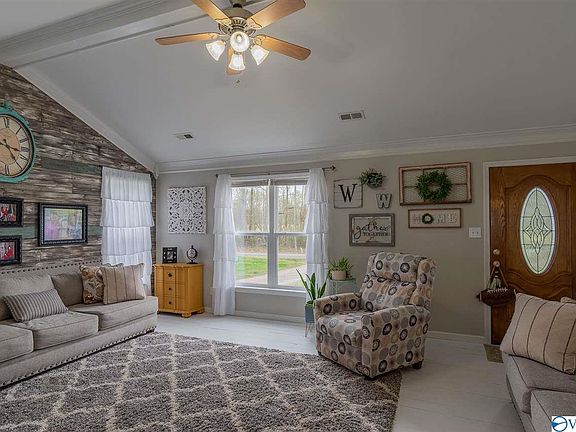 Stunning 3 bedroom, 2 full bathroom home sitting on 1 acre! You are welcomed by the spacious living room area perfect for quality time with family, featuring a gorgeous wood accent wall and breathtaking white wood flooring! The large eat-in kitchen is stocked with an ample amount of cabinet and counter top space, a pantry, and appliances! The relaxing master bedroom features a walk-in closet and a master bath! Enjoy the fresh country breeze from the covered front porch! Outdoors also features a 2 car attached carport, a detached garage, a nice playhouse with power and a window unit, a gravel drive, sidewalk, and so much more! This amazing property is filled with so many beautiful details!