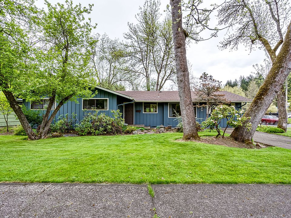 Must see this Exceptional Ranch Style home in an Incredible South Eugene location on a large corner lot! Established landscaping / Private setting / RV parking / Storage-shop / Carport / Large Yards. Easy access to schools / Shopping / Bus stop locations. Nicely Finished wood floors, fireplace, 3 beds & 1 bath in main house, and additional 2 bedrooms & 1 bath in the converted garage area. Inside laundry room with sink. Warm and desirable starter home or investment property with lots of space with a great location.
