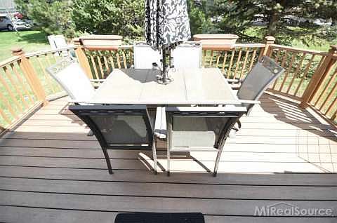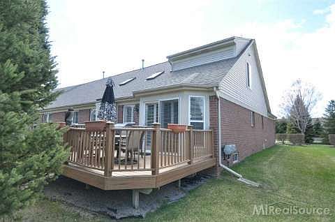 END UNIT in MINT condition! 3 bedrooms, One private suite on upper level with extra walk in has quality organizers, Large master with Bath, second first floor bedroom makes a great office. Polished hardwoods in entry to bright kitchen. Convenient snack bar, vaulted ceilings in nook and cathedral in great room. Thousands in custom shutters, Fiberglass decking, First floor laundry with brand new washing machine! Fabulous finished basement with full bath, living area and tons of storage space!Truly a TURN KEY!