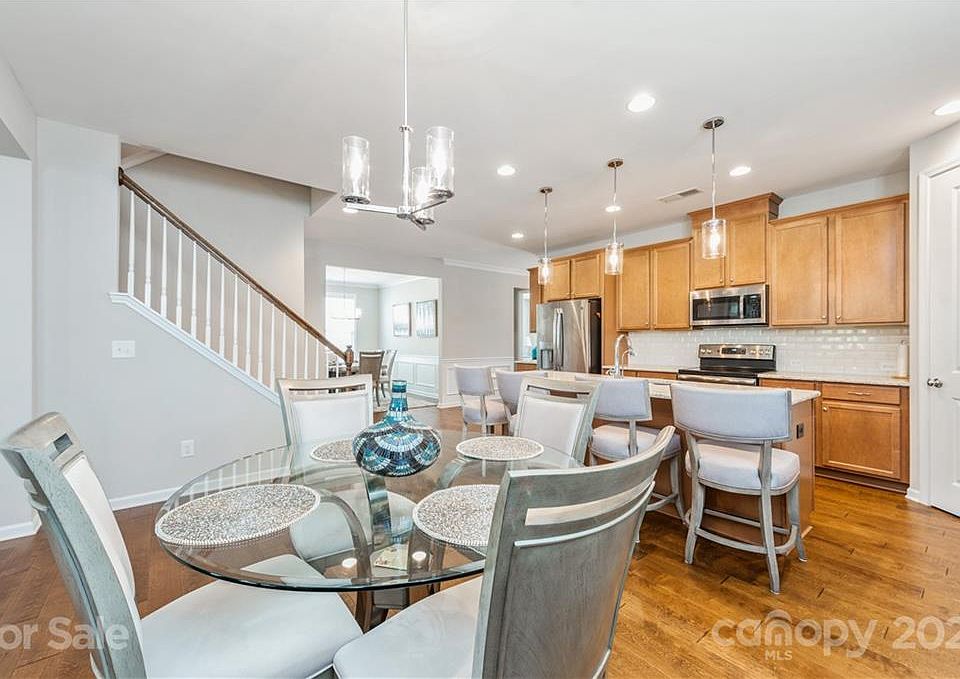 Gorgeous 3 bedroom, 3 bath home in sought after newer community-Hunton Forest in Concord. European style exterior, with extended driveway for extra parking. First floor features an open floorplan with 9ft ceilings and 8ft doors, spacious Great Room and formal Dining Room; Kitchen with large island/bar opening, 42" cabinets, backsplash, quartz countertops, and walk in pantry; Primary Bedroom Suite and bath with dual sinks and large walk in closet; good sized secondary bedroom and full bathroom. Second floor provides spacious loft perfect for entertaining, 3rd bedroom and 3rd bathroom. Comfortably enjoy the outdoors in the screened in porch, with gas hookup, perfect for grilling on a nice summer day, and enjoying the beautiful sunset views in the evening. Meticulously maintained flat yard that is completely fenced in. This one shows like a model, just pack your bags and move right in!