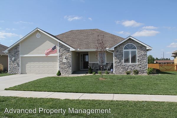 rentadvanced.com Executive Level 3 Bedroom 2 Bathroom - AVAILABLE NOW $50.00 OFF PER MONTH WITH A LEASE FROM NOW UNTIL MAY 2019 Military discount of $25 off rent price per month Rent: $1,550.00 Unit: Single Family Home Year built: 2009 Bedrooms: 3 Baths: 2 Garage: car garage Sq ft.: 1,600 finished. Interior Amenities: Located in a quiet neighborhood in East Manhattan, this fabulous executive level home for rent features an open floor plan. The kitchen has beautiful hardwood cabinets. All stainless steel appliances are included. There is a large pantry in the kitchen with an island between the kitchen and dining area. The large open floor plan is ideal for entertaining. The living room on the main floor features a gas burning fireplace. The large master suite features a bathroom that has double sinks, Jacuzzi tub and separate shower. There is a large walk-in closet. The laundry room includes washer and dryer as an amenity. The basement is completely unfinished, which is great for storage, etc. Beautiful hardwood floors in the kitchen, dining room, hallway and foyer. Carpet in all bedrooms, living room and basement steps. Ceramic tile in both bathrooms and laundry room. Two car garage. ADT Security System available to be activated. Exterior Amenities: Located in Wildcat Woods. This home is just 25 minutes to Ft. Rileys Ogden gate, 7 minutes to the mall, and 15 minutes to Kansas State University. Woodrow Wilson Elementary School and Dwight D Eisenhower Middle School cater to this neighborhood. These schools are rated as some of the top schools in the city of Manhattan. Deck off of kitchen for grilling and entertaining outdoors. Beautiful view from deck of the Flint Hills. Others: Pets allowed. Subject to approval. Maximum of 2 non-aggressive dog breeds only. $500 refundable pet deposit. No smoking inside or in garage. ATTENTION: The advertising in this post is property of Advanced Property Management, Inc. All email communication for any of our property listings should be in the following format:APMstaffname@advancedpropmanagement.com. All phone communication should come from 785-320-7977 or 785-320-2199. For privacy reasons of all current occupant at our listings, all viewings of available listings must be conducted with an Advanced Property Management, Inc. representative. To verify that this listing is available for rent, please reference the Advanced Property Management, Inc. company website, www.advancedpropmanagement.com or www.rentadvanced.com. (RLNE1858927)