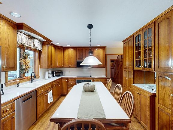 Exquisite and Elegant are what comes to mind with this beautiful home. Walk up the brick driveway and into the spacious foyer. Turn left to the luxurious dining room with stunning wood flooring or move on into the living room with floor to ceiling window that look out onto the pergola with a swing. Then into the large kitchen with an island for everyone to hang out and watch the cook use the brand-new fridge. Everything is at your fingertips to make great meals. If you're not sitting at the island, then sit in the family room with enough space for a table by the wall of windows to watch the wildlife outside. The primary bedroom and full bath are on the other side of the foyer this is a place to relax and fall asleep knowing that since the roof/Gutters/furnace/HW tank/Oven/dishwasher/Fridge/carpet and paint are all new that this will make a great move in ready home. Of course, we can't forget about 2 more bedrooms on the 2nd. floor and laundry on the first. Come and take a look