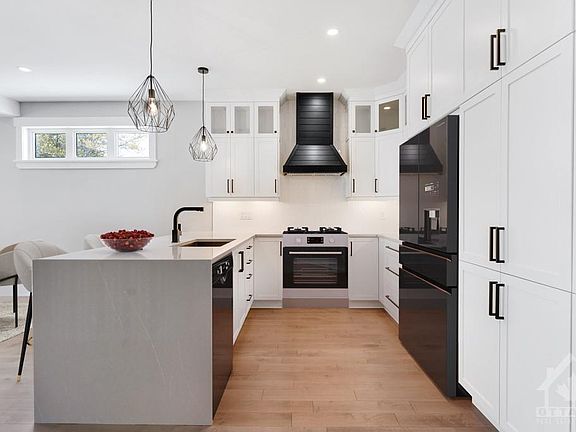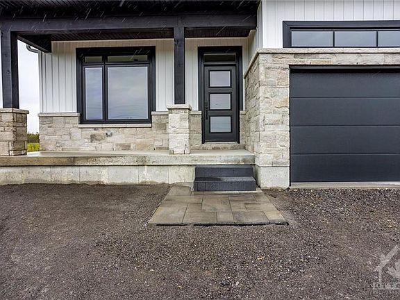 Gorgeous custom bungalow with no shortage of stunning details. Located on 2 acres, this newly built 3 bedroom home offers open concept main level layout. Engineered hardwood and oversized tile, 9ft flat finished ceilings with ambient pot lighting and designer light fixtures, flat trim, and linear fireplace. Stylish kitchen with quartz waterfall eat up peninsula, custom maple hood fan, ceiling height cabinetry with glass display cabinets and pantry space, under cabinet lighting, backsplash, and soft close doors and drawers. Beautiful primary retreat with ceiling detail, huge WIC, and ensuite with glass enclosed shower. 2nd bedroom overlooking front porch, main level laundry room, and full bathroom. Fully finished lower level with generous sized family room, 3rd bedroom, den/office, and full bathroom. Fully insulated true 2 car garage. Back deck off living room. Located 5 minutes to historical Almonte and 20 minutes to Stittsville. Full Tarion Warranty. Some images digitally staged.
