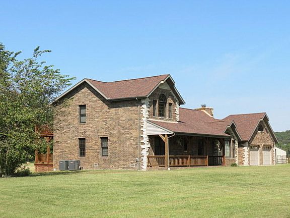 Lovely ALL BRICK 1 ½ story custom built home on 5 acres with multiple decks, Living Room with a beamed cathedral ceiling, hardwood floors and floor-to-ceiling fireplace with Country Flame wood-burning insert with blowers, a large Kitchen with solid surface counters & lots of oak cabinets, a 5-burner gas range/oven, overhead microwave, dishwasher & refrigerator all separated from the Casual Dining by a convenient sit-down breakfast bar. Also on the Main Floor is a large Bedroom as well as full hall Bath with tub/shower combo, the Laundry Room and access to the attached 2-car Garage. Upstairs is a Loft area currently being utilized as an Office overlooking the Living Room. Also up here is a magnificent Master Suite with private balcony with view of the property, a large walk-in closet and a