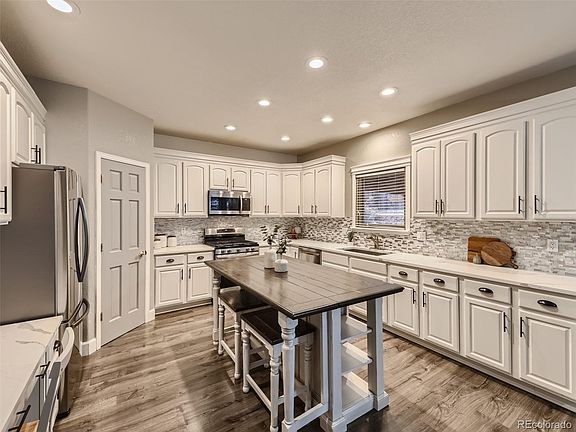 Don't miss this beautiful 3-bedroom, 3-bathroom home located on a quiet cul-de-sac with excellent curb appeal, and mountain views from every room upstairs. This updated 2 story home boasts a bright and open floor plan, a finished basement, 3-car attached garage (one oversized bay), and a spacious eat-in kitchen complete with quartz countertops, new stainless steel appliances, a dedicated built-in pantry, and large island. The adjacent dining area provides easy access to the oversized patio and professionally landscaped back yard, making this the ideal space to entertain friends and family. The main floor also includes a warm and inviting formal living room with vaulted ceilings, a cozy family room with a stone surround gas fireplace, and a well-appointed main floor powder room and laundry. Upstairs, the primary suite features a spacious ensuite bathroom with quartz counter tops, a walk-in shower with glass surround, a garden bathtub, and a generous walk-in closet. This level also includes 2 additional bedrooms and a full bathroom. The finished basement can be used as a recreation room or media room and includes a large unfinished storage room, egress windows and is plumed for an additional bathroom. Excellent location with convenient access to C-470, the mountains, and Bear Creek Lake. Don't miss out on this location!