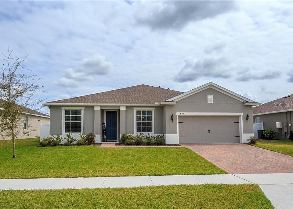 This Sandpiper Point plan is a 1-story floor plan featuring 2278 sq. ft. of living space with 4 bedrooms and 2 baths, formal dining room, and study with French doors. Upgrades include an open kitchen with grand island, granite countertops, 42" cabinets, S/S appliances, gas range, and a large walk-in pantry. The home was built for entertaining with an open concept kitchen and great room. A triple slider leads to the covered and screened in lanai overlooking the backyard. The owner's suite is large and spacious with double doors leading to a luxurious bathroom retreat with dual vanities, quartz countertops, an oversized shower with enclosure, and walk-in closet. The home also includes 18x18" tiles in all wet areas, great room, and hall ways, plus blinds, WIFI garage door opener and Smart Nest Thermostat. Orchid Estates is a picturesque new home community in Apopka with Orange County Schools, easy access to SR 429, within strolling distance to the Northwest Recreations Complex with lake, picnic and sports areas, as well as a concert shell.