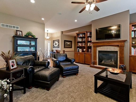 Stunning custom built home sure to stand apart in this great Marion neighborhood. Wooded private lot is the first standout and then to walk into this home and feel the volume with 10 foot raised ceiling in living room accented with a beautiful fireplace and custom built-ins to make it the heart of the home. Large kitchen with hardwood floors throughout, new appliances including a gas range, tall bar top perfect for entertaining, and gorgeous custom cabinetry. Large master bed and bath with large corner whirlpool tub, dual vanity and walk-in closet. Also be impressed with the sprawling fully finished walkout lower level that perfectly fits a pool table and a movie area! This home has had many updates and additional adds including; 9ft ceilings, new carpet, freshly painted, updated lighting, surround sound, security, central vac, extended deck, large patio, and so much more! A true must see!