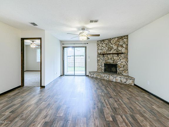 Spacious 2 bedroom, 2 bath one story end unit townhouse in convenient Mandarin location. Updated with new laminate floors and carpet, new AC unit, and ceiling fans. Nice wood burning stone fireplace. Patio with storage closet and fenced yard. Front and back screened-in porches. Zoned for desirable Mandarin Oaks Elementary and Mandarin Middle schools.