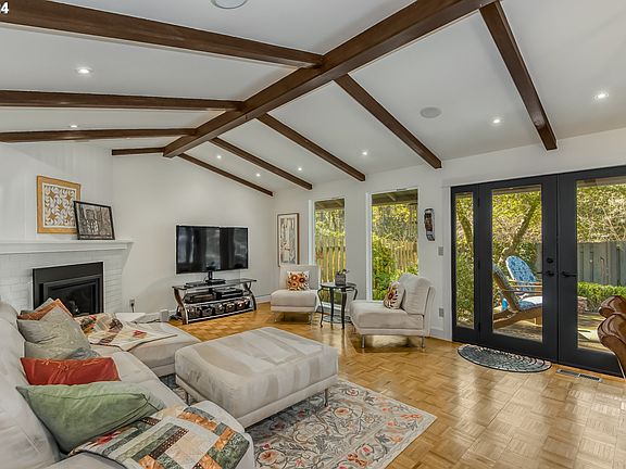 - Features: Beamed Ceilings, Fireplace, French Doors, Living Room Dining Room Combo, Vaulted Ceiling