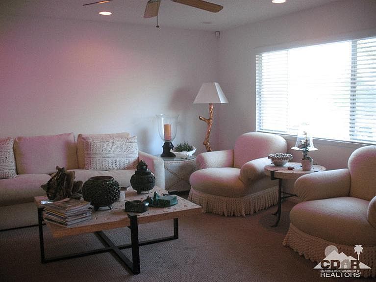 Fabulous 2 bedroom, 2 bath home in a great location in Palm Desert Country Club.... right down the street from the Clubhouse!! This home boasts wonderful upgrades such as recessed lighting! ceiling fans in every room! New marble vanities in both bathrooms! Great kitchen with refrigerator, gas stove, microwave, New stainless steel sink and faucet! Large laundry room with washer and dryer! New paint, carpet and window coverings! Lots of storage throughout the house! Private backyard with patio cover! Swamp cooler too 1 Car garage!! The clubhouse is just down the road for dinner, Happy Hour and full bar! You name it!! This house has it all! Don't miss this great opportunity Call me today for your private showing! Home is vacant. Now being shown unfurnished.