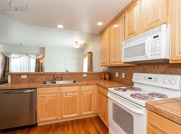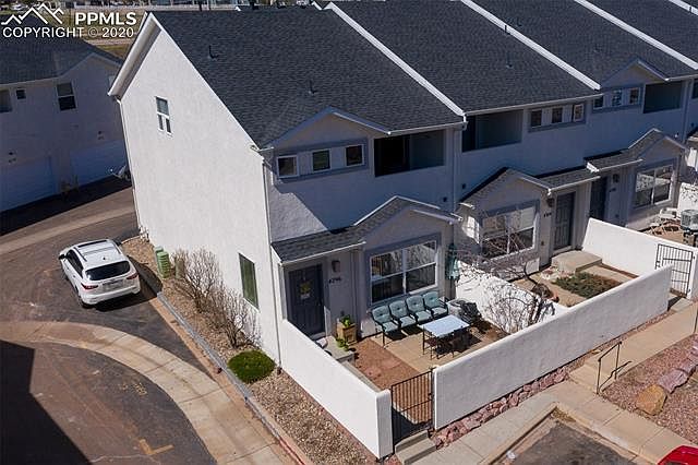 Very desirable end unit in Pinnacle at Cheyenne Mountain now available in exceptional condition. 3 bedrooms, 2.5 baths, and 2 car attached garage. You'll love the spacious private patio and private covered deck off the master bedroom. Beautiful wood floors throughout the main level. Spacious and relaxing living and dining areas. Fully equipped kitchen with all appliances including newer stainless fridge and dishwasher. This Master suite features a huge walk-in closet, spacious private bath, and private covered deck. Both upstairs bathrooms feature double vanities. The laundry is conveniently located upstairs. You'll keep cool this summer with Central Air. The use of guest parking spot 24 which is right in front of the unit is included. This super convenient space is paid for 2020 and can be retained by the new owner. Sorry but due to the current situation only virtual showings will be allowed until further notice. However, all offers will be presented to the owner in a timely manner. Full home inspection has already been completed and is available. A 13 month home warranty is included.