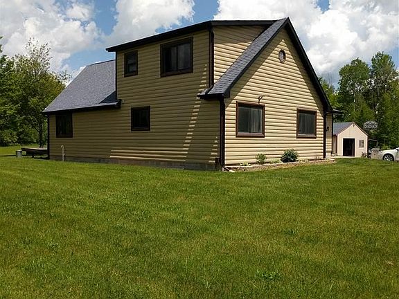 Country Living with city conveniences on 10 wooded acres! 2 ponds! Chalet style custom home! 3 bedrooms, 3 bathroom! Many awesome features! Heated garage, handicap accessible, outside wood burning stove which heats the home and garage, two master bedroom suites, beautiful vaulted ceilings, loft, energy efficient windows. Cooks kitchen with loads of counter space and maple cabinets. This home is a must see! Call today!