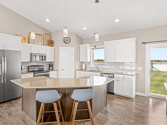 Your dream home awaits at this move in ready rambler! This beautiful 5 bedroom, 3 bathroom, 3 stall garage home is one you will want to see for yourself. The main floor features a bright and open kitchen with Quartz counters, tile backsplash and vaulted ceilings. The living room has an incredible fireplace with built in entertainment center. The master suite features a tray ceiling, tile shower, double sinks and walk in closet. The finished basement has a large family room with two bedrooms and a bathroom as well as an area with hardwood floors ready to make a gym or bar area. Additional features include slate appliances, air exchange, and tankless water heater. The over sized triple stall garage is insulated, heated, and has a floor drain. The large backyard has a swing set and is fully fenced along with a sprinkler system. The completed patio is ready to enjoy the summer weather. Schedule a showing today!