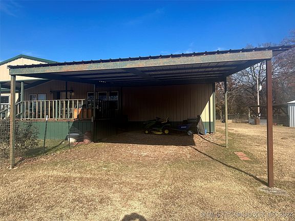8 ACRES! This 4 bedroom 2.5 bath Factory built home is permanently attached on 8 acres (m/l). Living room, kitchen, dining room, and hallways have recently been repainted. Large kitchen with island, pantry and eat-in-bar, large family room w/fireplace, formal dining, bedrooms have walk-in-closets. New metal roof and carport in 2016, all steel siding and skirting, new heat pump in 2016. Storm shelter, 20x20 shop w/concrete and electric and attached 20x20 lean-to equipment. Beautiful front porch to relax and enjoy the surroundings & wildlife. Current owners have added a fence around the yard and the goat area.