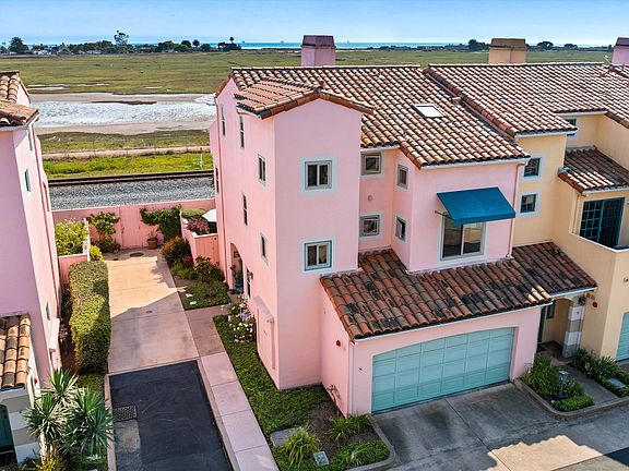Enjoy ocean, salt marsh & mountain views from this breezy tri-level 3 bedroom 2.5 bathroom townhome in the most livable each town in California on arguably the safest beach in the world. On the first level, polished concrete floors extend into two bedrooms that share an updated modern white tiled bathroom. A charming private patio boasts a spa for a warm soak after a day of play at the beach. The middle level connects the cheerful open eat in kitchen with the living room featuring a sleek fireplace and the dining area that opens onto another private balcony that enjoys brilliant sunsets year round. The primary en suite on the top level benefits from sweeping panoramic views from its private balcony with an elegant fireplace and full tiled bathroom with separate soaking tub & shower. Inside laundry & attached two car garage with direct access/storage. Freshly painted with newly polished concrete floors + brand new carpet in primary suite. Roll or stroll to the beach or town in less than 10. Available for 1-2 year lease. May be available furnished for 30+ days for a higher price . Showings start November 20th with two days notice.