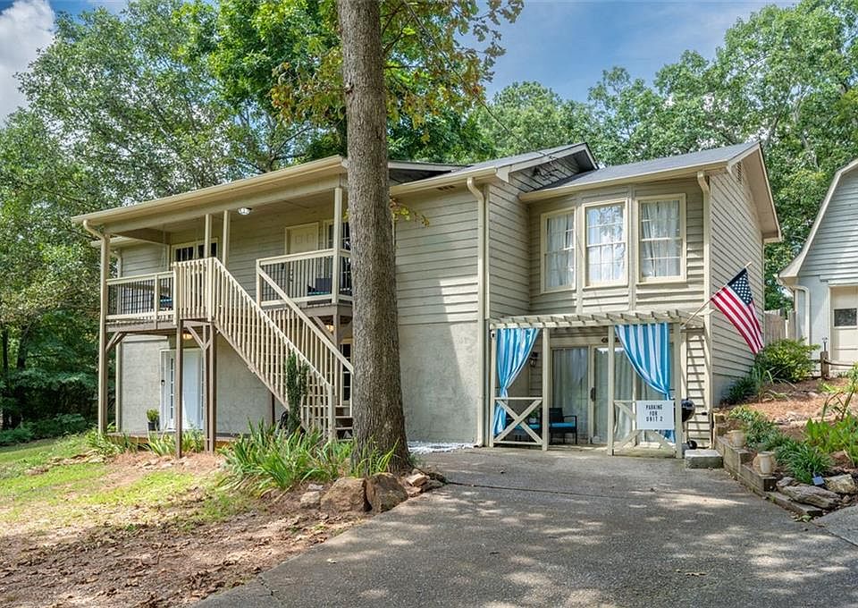 This is a fully functioning, fully furnished, short term rental. its a simple family residence that has a main level two bedroom two bath, a separate entrance, 3 1.5 on the upper level, and a detached building that includes a 1 bed 1 bath apartment and a 2 car, 2 story garage. There's also a second driveway that could be extended to the back of the property. We had envisioned building a barndominium back there at some point. Cherokee county but servicing Johns Creek, Milton and Alpharetta. This is a single family residence with multiple income streams. Bright, Roomy, country living style home. Deer roam the property. Fully Functioning and Cash flowing day 1.