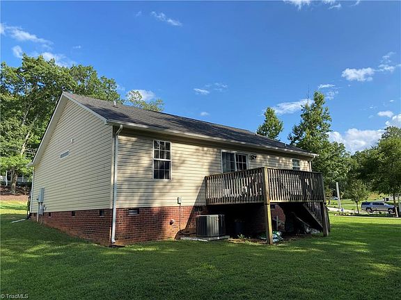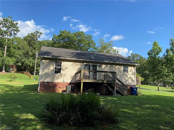 2006 one level home, 3 bedrm/2bath, Kitchen & baths have solid surface countertops. Kitchen range, dishwasher and built in microwave remain, kitchen is open to a beautiful dining area and living room with vaulted ceiling & ceiling fan. Sliding glass back door leads to 12x10 back deck, nice back yard & wooded area. Home has a split bedrm plan, primary bedrm large large 10x6 walk-in closet & it's own full primary bath, other 2 bedrooms and full hall bath with tub and shower, concrete drive and sidewalk. USDA Eligible