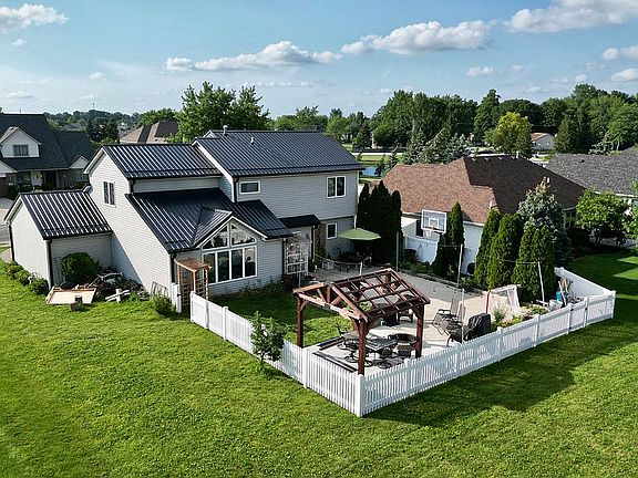 Finished basement, Vinyl fence, large backyard patio, basketball court.