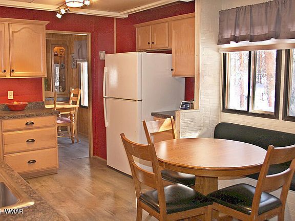 Honey! We are HOME! Spring is here and Summer Paradise just around the corner! Imagine sipping a cold beverage from the generous front or rear covered porch listening to the birds and watching the squirrels scamp around! Saunter over to the over-sized 2 car garage that secretly holds your Man-Cave Escape! Seriously! The wife doesn't even know! She's in the spacious kitchen with built in breakfast nook looking out the window at the Apache Reservation forest across the street. This DOUBLE LOT holds so much privacy! Large Master suite with brand-new walk-in shower too. TWO Living spaces perfect for entertaining the neighbors! You don't want to miss the 4th of July Community Jamboree! Decorate your car/side by side or your wagon and join the parade by driving the neighborhood waving, laughing, and throwing candy to the kids. Meet up for a BIG BBQ afterwards. Private membership to the Pinetop Lakes Community Recreation Center paid through your HOA dues. Lap pool, spa, pickleball, tennis, game room and more. So Many events during the summer including pancake breakfast on Saturday morning! It doesn't get better than this! Three miles to the Hondah Casino and so many lakes and hiking trails. Minutes from Pinetop's famous local restaurants like Charlie Clarks, The Den and Red Devil. What are you waiting for? Call me today to find out why the sellers have priced this home so fairly for a quick sale. You wont regret it!