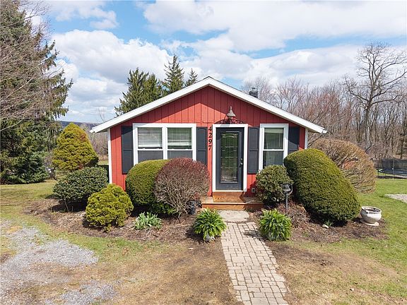 Welcome to paradise! Sitting on shy of 4.5 acres, this is truly a slice of heaven. This 2 bedroom 1 bathroom home has more than meets the eye, including a remodeled kitchen, a large living room, an office/playroom on the first floor, a front enclosed porch and 2 sunrooms. The lower level consists of two bedrooms and one of the sunrooms off the larger bedroom, perfect for coffee in the morning, office or even a workout room. The grounds are magical- a pond, multiple sheds with electric, raised garden beds and even a cozy cabin with a fireplace & electric for guests or summertime glamping! Updates include tankless hot water tank (2023), Water softening system (2022), and updated kitchen and bathroom. Don't miss out! Delayed Negotiations Monday April 21st at 12PM. Open House Saturday, April 19th 12:00PM-1:30PM.
