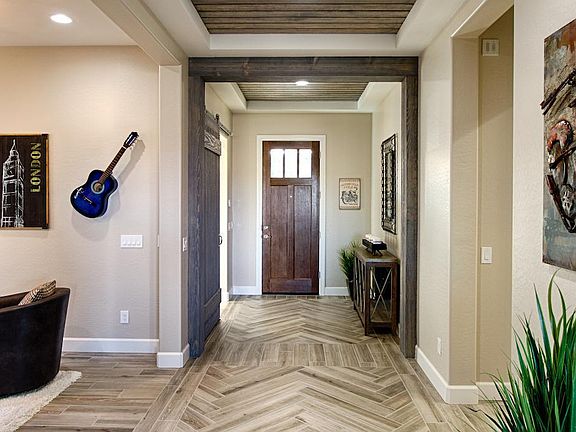 The Hotel California is an open-concept floor plan featuring a central living space and private Owner's Suite.. Entering through the covered porch you'll find the second bedroom and bath as well as the den. Then, passing through a private hall you'll find the Owner's Suite with en suite bath and a large walk-in closet. As you pass through the great room you'll find a sliding glass door as well as stone countertops throughout. This floor plan features a 3-car tandem garage.