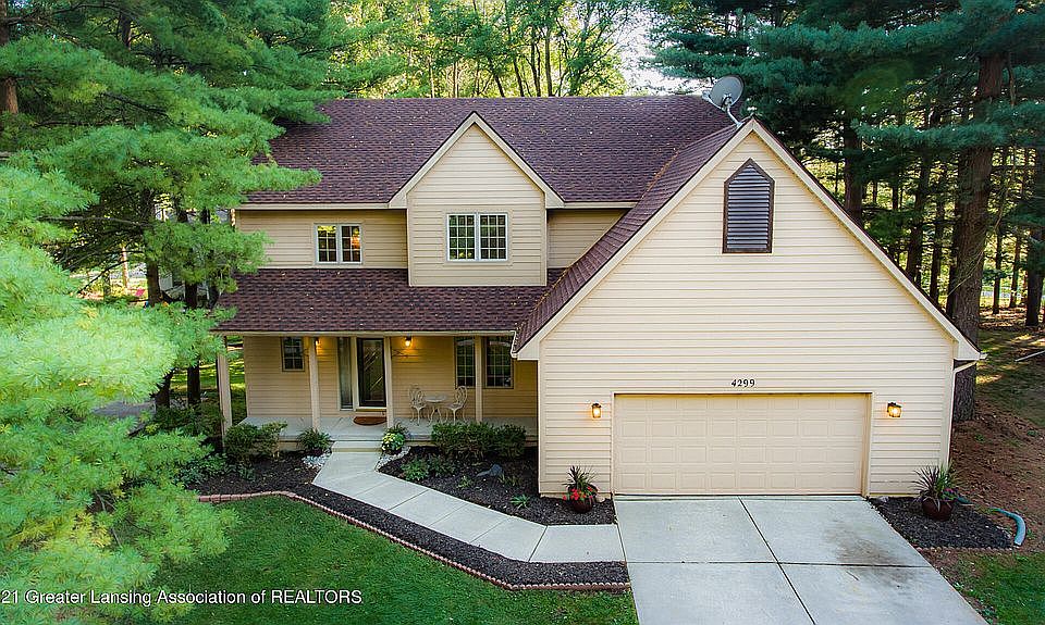 Inviting 4 bed/4 total bath home in the heart of Sundance Estates subdivision-Okemos. Spacious two-story foyer offers gleaming hardwood floors. Dining room features picturesque views. Open kitchen is light-filled and airy with bright white cabinets and stainless appliances. Living room offers the perfect space to relax by the fire surrounded by natural beauty. Modern upper level features 3 bedrooms, full bath, and expansive primary suite. The finished lower level will surprise you with egress windows & another full bath. Updates include; new roof August 2021, granite countertops in the kitchen & bath, light fixtures, stainless appliances, carpet, and fresh paint throughout!