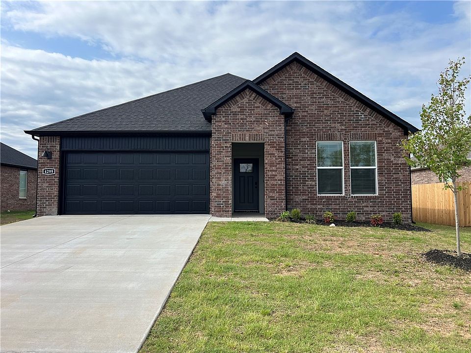 Beautiful Justin Plan in Brentwood Village, located in Springdale, close to the C.L. "Charlie and Willie George Park that consists of walking trails, dog park, splash pad, ball fields, and tennis courts close to the Don Tyson Parkway, near the highly sought-after Don Tyson School of Innovation and other schools. These brand-new homes will be 4-sided Brick! Living room will showcase a beautiful and modern Electric Fireplace with Poplar Mantle. Home will have LVP and Carpet. Kitchen will have 42-inch cabinets, lovely appliances and quartz countertops and tile backsplash. Ceiling fans in Bedroom one and the living room. Primary bedroom has a fabulous en suite with an oversized walk-in shower and elongated commode. LED lighting throughout. High efficiency AC with programmable thermostat. Come find your dream home today! Taxes and Parcel TBD.