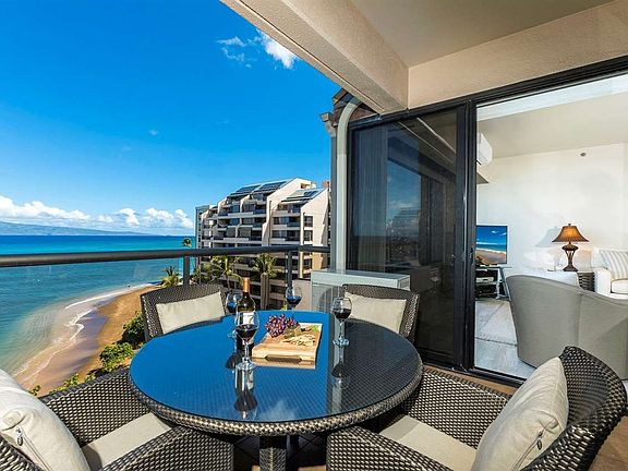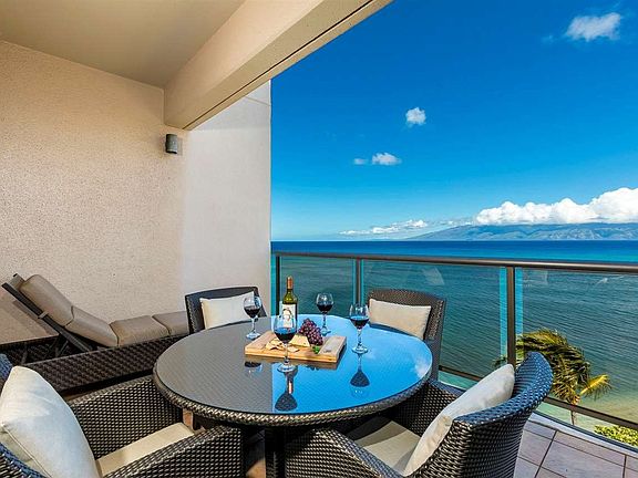 Great views, great condition, feels and shows like new. This is an Exceptional Opportunity and Investment on this expansive 1690 square foot floor plan including an oversized lanai. Two Bedroom / Two Bath unit with huge panoramic views of Sunset, Premium seat for the Whale show and views of both neighbor Islands. This Unit has been upgraded and remodeled and clearly shows Owner pride in the décor and furnishings. The upgrades include tile throughout, Cherry Kitchen cabinets with granite counter tops and Stainless-steel appliances, remodeled bathrooms with granite counter tops. There is Air Conditioning to the Living room and Bedrooms. Outstanding ocean front location with very open floor plan and full window exposure to the ocean throughout the Master Bedroom and Living area. This unit has great Rental potential but has been used as a second home for years. There is also an additional secured exterior storage area included with this Condo. In addition to direct access to the beach the Sands of Kahana features two swimming pools, two heated outdoor spas, three tennis courts, two fitness rooms, Restaurant and Bar, several gas Bar B Que areas, 24 hour front desk, 24 hour security patrol, putting green, large koi pond, concierge desk, sea kayak and stand up paddle board rental onsite. In addition, there are five more restaurants, shops, activities, Whaler General store, gas station and additional amenities and services all within walking distance. Please check out the Virtual Tour and Matterport link above to appreciate the size and views from this great Condo.