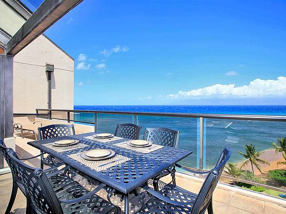 Spectacular 3 bed / 3 bath private corner condo with incredible income. Located on the 8th floor with no units directly above you, this is clearly one of the largest and best floor plans in West Maui with over 2720 square feet of living space including 3 lanai's! Each of the Suites has its own lanai, full private bathroom, abundant closet area and Big Ocean views. From the minute you walk in the door with 20 foot high interior custom wood ceilings and the additional natural light from the two sets of skylights you recognize a spaciousness seldom found in Oceanfront condos and know you have truly found your own personal Maui oasis. Completely remodeled with over $ 200,000 in exquisite upgrades including cherry wood cabinets, granite countertops, huge gourmet Kitchen, stainless steel appliances, specialized lighting and plumbing fixtures, custom tile floors and Air Conditioning throughout. The first level Master Suite has floor to ceiling Ocean views with an extensive Bathroom area layout including Shower and separate Tub with Ocean and Mountain views, a walk-through double closet and dressing area. There is an expansive staircase leading to the second level with over 650 square feet of Second Master suite living area, King bed with 2 bunk beds, walk in closet and vast Bathroom and Shower area. Step out to the upper spacious lanai area for more wrap around Ocean and Mountain views. The condo also includes a large outside storage area. The abundant Resort amenities include three tennis courts, two fitness rooms, onsite restaurant and bar, onsite sea kayak and stand up paddle board rentals, two large heated Jacuzzi's, two heated swimming pools, concierge desk, Koi pond, 24 hour front desk, security patrol staff, putting green, 16 gas BBQ grills, covered parking and a beautiful ½ mile sandy beach. In addition, there are five more restaurants, shops, activities, Whaler General store, gas station and additional amenities and services all within a five minute walk. This unit has had incredible Net six figure Income over the past two years with occupancy over 90% and has future bookings that already exceed the prior year's income.