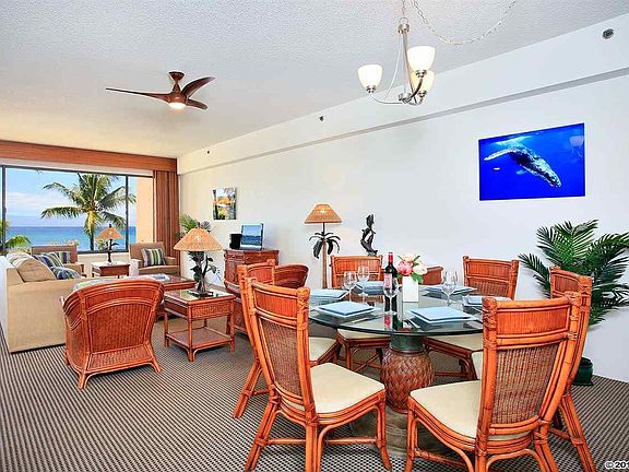 Exceptional Opportunity and Investment. Rarely available Three Bedroom / Two Bath unit with over 2000 square feet of living space including Two lanais. This exceptional money maker was completely remodeled with all new furnishings in 2017. This extensive remodel included an all new Kitchen with granite counter tops and Stainless steel appliances, remodeled bathrooms with quartz counter tops, new plumbing fixtures, new electrical fixtures, new ceiling fans, new floor and window coverings, and a new Split Air Conditioning system servicing all Bedrooms. There is also an exterior storage area secured for this Condo. Outstanding ocean front location with very open floor plan and full window exposure to the ocean all along the front of the condo. This is a corner unit so all the bedrooms have large windows for a bright well lit interior. The established privately operated Rental program has provided strong six figure Net Income to the Owner and has future bookings in excess of $ 100,000. All of the work has been done making this a complete turnkey Unit with substantial future bookings and providing the new owner with immediate cash flow. The 2nd floor location gives you quick access to the beach, restaurant, and gas BBQ's and other amenities. The Resort has two swimming pools, two heated outdoor spas, three tennis courts, two fitness rooms, Restaurant and Bar, 24 hour front desk, 24 hour security patrol, putting green, large koi pond, concierge desk, sea kayak and stand up paddle board rental onsite. In addition, there are five more restaurants, shops, activities, Whaler General store, gas station and additional amenities and services all within walking distance. All combined this expansive floor plan with amazing Ocean views, beach front access, established income and future bookings and completely remodeled and turnkey should be on every Buyers list. Call your favorite Realtor today to check availability for this heavily booked condo. You won't find another 3 bedroom / 2 bath condo on the West Side at this price!