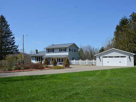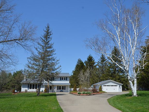 A HOME YOU WILL BE PROUD OF!! The concrete circle drive leads you in with beautiful landscaping, gorgeous flowers, white picket fencing & ends at the gorgeous 2 story home. Step inside to find an amazing remodeled kitchen w/granite counters, large island, coffee bar & opens up to the dining room & back deck! Inviting living room w/brick fireplace & large picture window w/views of the neighboring pond. 4 bedrooms, 2.5 baths plus a dream laundry room, rounds out the main 2 floors. The partly finished basement offers a 2nd family room w/additional fireplace & a workshop too. Luxury vinyl floors & built-in cabinets can be found throughout. Outdoors, the home comes w/1.84 acres of flat property, fenced-in back yard & large back deck. Perfect entertaining space for your upcoming cook-outs and summer get togethers. 2 car garage, storage shed & chicken coop, too! Perfectly located just 1 mile out of town, so you get the country vibes yet still being close to town. WELCOME TO YOUR NEW HOME!!