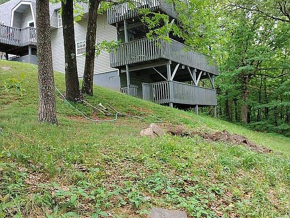 This beautiful, well maintained, craftsman style home that sits atop Renegade Mountain! The inside features a cathedral ceiling with exposed beams and 2 natural stone fireplaces that span 3 stories. Mancave overlooks main living area. family room downstairs with pool table and a bottom floor which could easily be converted to mother in law suite or rental. Open concept main floor living, dining, kitchen, and foyer area. Four levels with four decks. Rolling lawn with rock and beam retaining walls and mature trees on approximately one half acre.