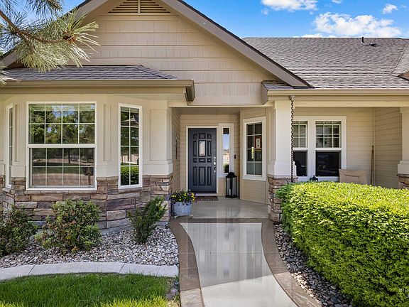 Situated on a quiet loop in lovely Ashford Greens golf course community, this Meridian home shows pride of ownership inside & out. The well laid out, split floor plan includes 3 beds, 3 full baths PLUS office off of the entry w/ french doors PLUS upstairs bonus room w/ built ins & its own full bath. Vaulted ceilings, beautiful alder cabinetry, travertine, & hardwood flooring are just some of the high-quality features you'll find in this home. En suite master has walk-in closet, bathroom w/ double sinks, shower, and separate soaker tub. Enjoy the tranquil .26 acre yard w/ no immediate rear neighbors, established trees & landscaping, raised garden beds, newer awning, stamped concrete, storage shed & newly replaced fencing. HVAC & water heater 2017 and water softener in 2021. Ashford Greens is conveniently located for access to the Ten Mile onramp, shopping, dining, and schools. Ride your golf cart or walk ~500 ft. to the clubhouse with dining and lounge! Don't miss this one, you won't regret it!