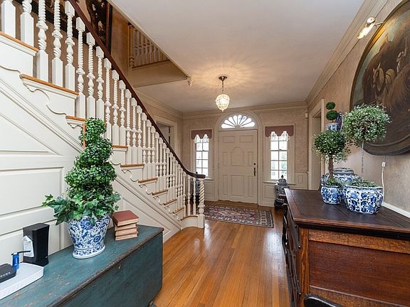 "BRYN CORON" - Exceptional 32+- acre country estate w/ pastoral landscape, rolling woodlands, and a scenic pond abutting conservation land. Tree lined driveway directs you to an immaculately cared for property with period detail throughout; hardwood + wide pine floors; 7 fireplaces; high ceilings; crown + hand carved moldings; chestnut paneling; wainscoting; quality built-ins; an elevator; + a custom kitchen w/ professional grade appliances (Viking multi burner range), eating area, a 1875 cast iron wood stove, + pantry + wine refrigerator. Some other features include: A lovely sunroom with 3 walls of French doors leading to a patio w/ breathtaking views; fireplaced living room; dining room; library + bedrooms; Tavern room w/ chestnut paneling, fireplace w/ Delft tile surround, beamed ceiling + a large dining area; 4 car (w/ heat & AC) + 2 car garage; ideal for horses and farming. Award winning S.T.E.A.M. program at Thomas Prince School (Science, Technology, Engineering, Arts, Math)