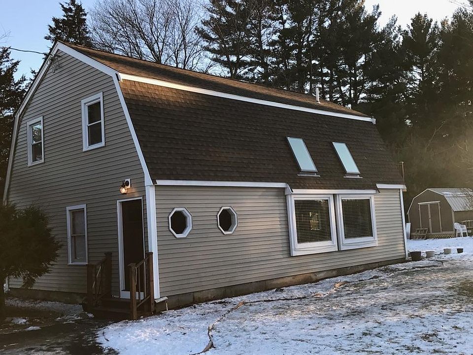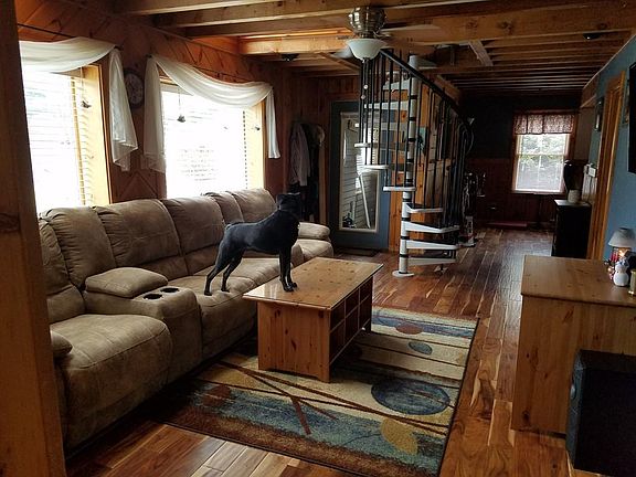 Come see this one of a kind Gambrel style home located just over the Norton line. Home is set back off of the road with plenty of privacy. Perfect yard for barbecues with plenty of space for yard games and pets. Lots of updates which include hardwood flooring, electrical panel, roof, skylights and refridgerator. Water tanks and heating updated within the last 5 years.