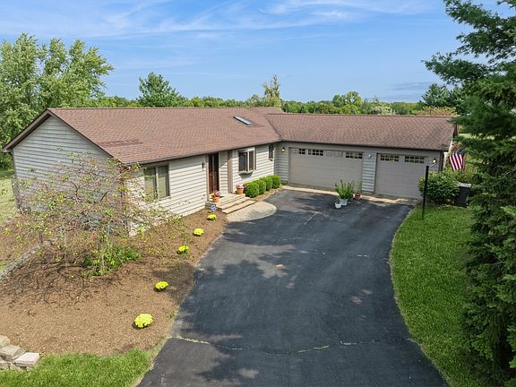 Motivated Sellers! Don't miss this opportunity to make this exceptional property your own! 5.24 Acres is one of the nicest parcels of land in Kane County. Perfectly situated across the street from the 757 acre Muirhead Springs Forest Preserve with it's extensive paths for walking, horseback riding, dog walking, bicycle riding and birdwatching due to it's very large prairie preserve pond or saddle up and walk across the road. 36x40 Pole Barn can be used for horses, hobbies or car enthusiasts. Beautiful Home has plenty of natural light. Open Floor Plan with 4 Bedrooms, 3 Full Baths, 3 car attached garage boasting 8ft doors and 9ft ceiling. The Kitchen has been updated with 42" cabinets, stainless steel appliances, quartz countertops and new skylight (2024). The Kitchen dining and living room are open concept with spacious living room having a sliding glass door that opens to a large deck that overlooks the scenic countryside and spectacular sunsets. The Primary Bedroom features a large walk-in closet and large newly updated bath with 2 vanities, clothing closet, linen closet, separate shower and free standing modern soaking tub. The Primary Bedroom also has a sliding glass door that opens to the same large deck that spans the entire north side of the house. Large open concept Walkout basement with a Bedroom, full bath and plenty of storage space behind closed doors. The Home was built with energy efficiency in mind; 2X6 walls for extra insulation. Geothermal Heating and Cooling System for low cost utility bills. Newer well pump and wiring. The home is situated on 1 maintained acre and 4 farmland acres, which provides income and tax cuts. Located in the highly rated 301 school district. Great location close to Highway 47, I 90 and Route 20. Quick and easy access to grocery stores, restaurants, and shopping. Make your appointment today! You won't be disappointed.