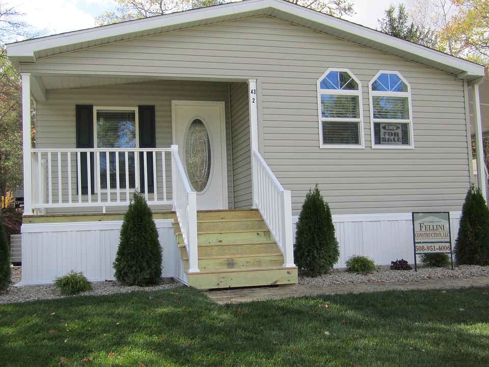 NEW HOME. Are you ready for a new living space? Downsize into this lovely new home. You will love the U-shaped kitchen with upgraded cabinets and appliances. The dining and living room areas are open and bright. There are two bedrooms and two baths. This home also includes a small office. Flooring and carpeting is neutral and quite pleasing to the eye. You will also find a sizable sun room and an attractive front porch. Landscaping includes in ground sprinklers, shrubs and plantings, sod and a new storage shed. This home is well thought out and waiting for you. Price of share not included.
