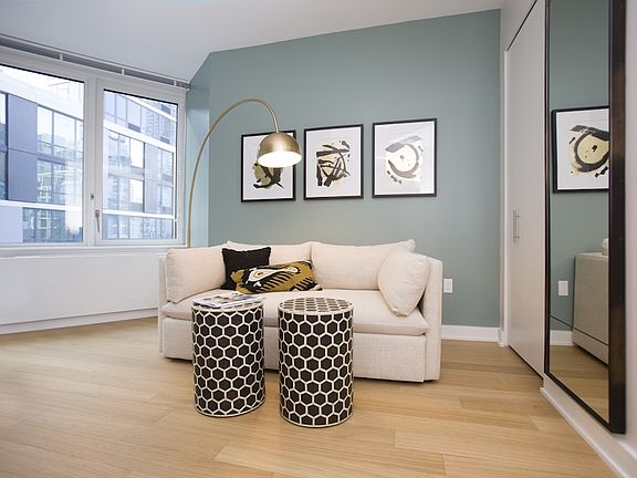 Sunny spacious studio apartmentIn-home laundrySweeping manhattan viewsSix green spaces