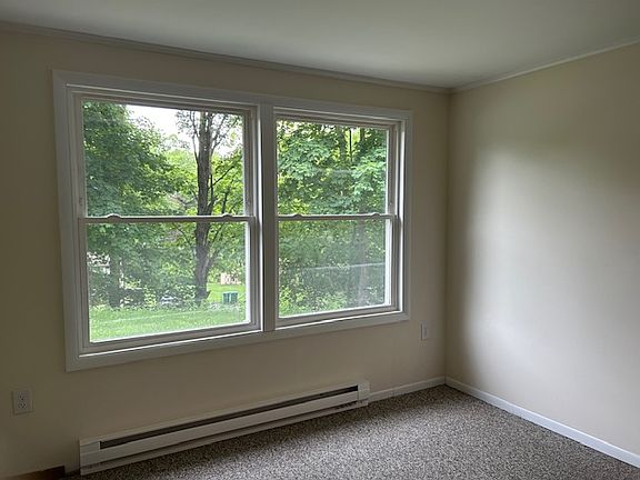 Situated on a meandering country road is this updated 2 bedroom apartment. New windows, renovated kitchen offers dishwasher, microwave, range and refrigerator. New heating elements and thermostats, New Carpets. Has it's own washer and dryer. Private back deck overlooks stream. Garden shed and off-street parking. Must have good references, credit score above 620 and provable income.