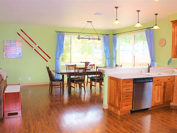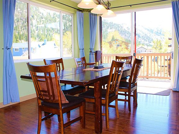 Turn key and spacious four-bedroom home in the heart of the June Lake Village. This well-designed home is perfect for families or vacation renters. Living, dining and kitchen areas are open and perfect for gatherings. Just off the living area is a large deck ready for outdoor enjoyment with stunning views of Carson Peak and surrounding mountains. Private master bedroom has office area, gas fireplace, views of June Lake, walk in closet and attached bathroom. This well-maintained home also offers attached two car garage, large laundry room, a separate heat furnace for each level, and fenced in yard. The beautifully landscaped yard is easy to maintain as well. Walk to June Lake, Gull Lake, eateries, shops, June Lake library and community park. Zoned for nightly rentals.