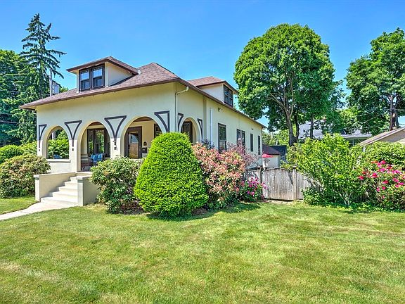 Exquisite Arts and Crafts bungalow in the heart of the Highlands with period arches from this deep front porch to the spacious interior. This true stunner with a stucco exterior, original leaded glass windows and quarteroak floors opens to a remodeled kitchen with new tile backsplash, new or newer appliances, silestone countertops, new lighting & loads of cabinet storage. Very pretty foyer flanked by formal dining room & living room w/ period-specific windows. Private & grassy fenced yard with perennials and flowering bushes make the perfect place to grill or enjoy a glass of wine. Sizeable primary bedroom. Gigantic finished basement w/ extra space for storage & workbench, upgraded full baths up & down both with attractive custom tile. Ample garage close to entry w/ spot for coats & boots. Natural gas heat & cooking. Meticulous wood floors, bonus rooms on each floor. Sophisticated charm. Impeccable. 1st floor bedroom.. Jones Point nearby w/ playing fields, pickleball courts.