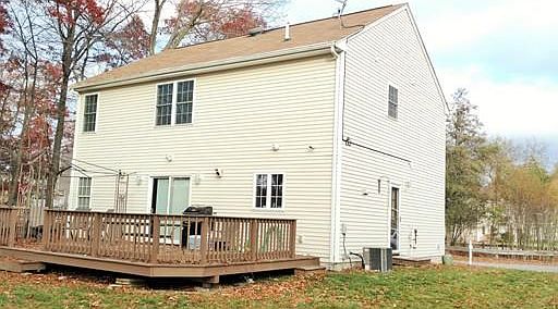 Great priced three bedroom colonial on a large private lot located at the end of a cul-de-sac! This house is conveniently located minutes from highway access and many other area amenities yet still has a very private setting. The first floor has a spacious family room with a half bath and a gas fireplace that opens to a large deck great for a get together with family and friends. The kitchen is open to the family room and the good size dinning room. You have a nice bonus room on first floor that can be used as a office or a additional sitting area. The second floor has a big beautiful master with large walk in closet. Two additional good size bedrooms are on this floor. There is also a very large bathroom with a shower, tub and shower, double vanity with a convenient second floor laundry. The large lot has a big shed on it and offers potential to expand on house or add a garage. Don't delay come and see this great priced house today!