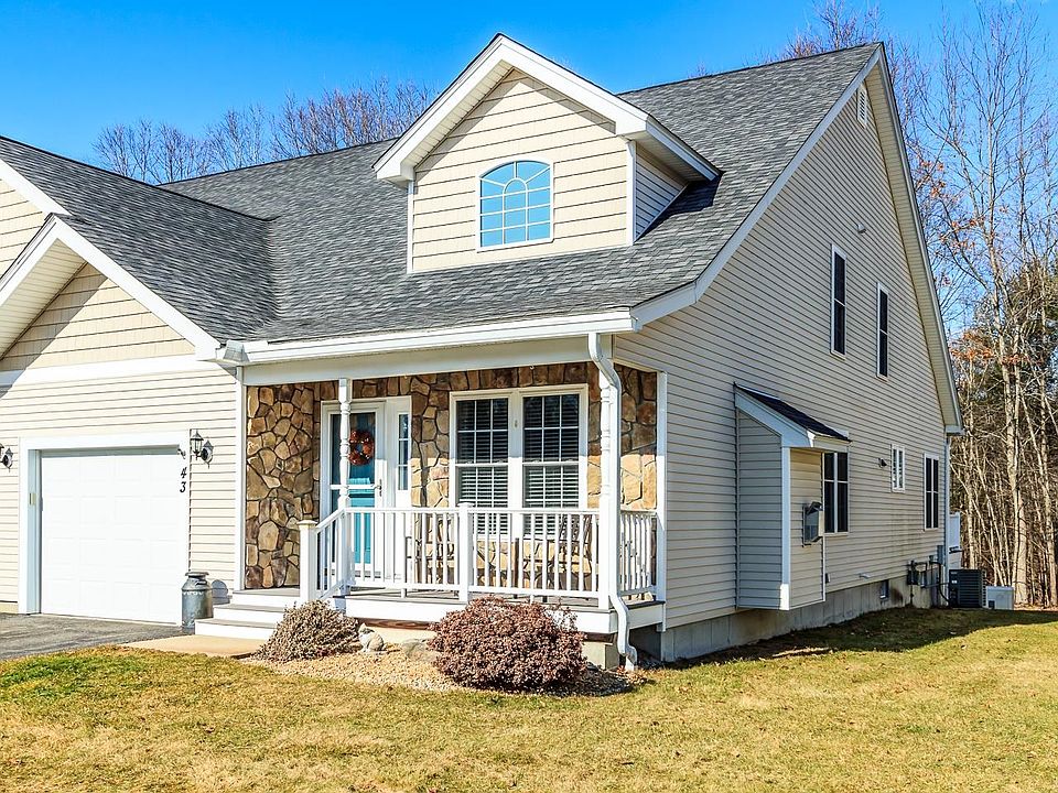 This thoughtfully designed and well-maintained condo located in the desirable 55+community of Blossom Court is ready for you to call home! The versatile layout includes many multi-purpose spaces for entertaining or relaxing and is large enough to accommodate your guests, extended family, caregiver AND hobbies. The first level features a comfortable living room with a high cathedral ceiling, hardwood floors and a cozy gas fireplace. Dining options include a formal dining space, a sunny breakfast area and a private back yard deck. The expansive kitchen with a butler’s pantry and stainless-steel appliances allows for tons of storage and meal prep space. The first-floor primary bedroom suite has several closets and a private ensuite with shower/bath and double vanity. The second floor hosts a generous 750 sf suite with a bedroom, 3/4 bathroom, HUGE finished bonus room/closet/storage (or 3rd bedroom), an office/loft area overlooking the family room, and attic storage. Ample storage space is available in the unfinished basement, garage, and attic areas. Enjoy nature from your back deck overlooking a private wooded backyard or relax on the front covered porch to greet neighbors or stroll through the woodland trails. Blossom Court offers a clubhouse for community and private events. The Litchfield area offers various recreation opportunities, including indoor/outdoor pickleball, bike trails, nature trails, kayaking & golf. Open House Sat. 2/24 from 11-1.