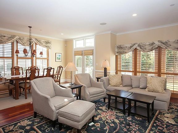 Beautifully appointed 3 bedroom home. End unit with views of Back River. Upgraded Gourmet kitchen with center island,granite counter tops stainless appliances and great separate desk work area. Elegant living room with built in bookcase, plantation shutters, french doors out to wrap around deck. Master bedroom with 2 spacious walk in closets, fireplace, spa like master bath and doors to a deck with views of Back River. Two large bedrooms with wood floors. Welcoming Farmers porch entrance. This home was thoughtfully built and includes so many upgrades!