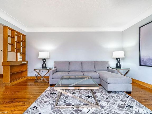Welcome to 43 Barron St, Welland. This 3 + 1 Bedroom all brick bungalow is located in the Niagara College / Chippawa Park district. This very well maintained home features beautiful hardwood and large picture window in the Living Room. Huge eat in kitchen with lots of cupboard and counter space, gas stove and fridge included. 3 spacious bedrooms with hardwood flooring. Updated 4 piece bathroom on main level. Separate back entrance takes you to finished basement with large Rec Room, 4th bedroom, 3pc bathroom and laundry room. Newer windows in the entire house, Roof ( 2007). Furnace ( 2007), A/C (2007), Hot Water Tank Rental (2009). Over sized 1 1/2 car garage, extended front porch, concrete driveway and back patio. partially fenced yard. Immediate possession available. All offers if any, will be presented to the Seller on Tuesday January 26th at 7pm. Call for private showing.