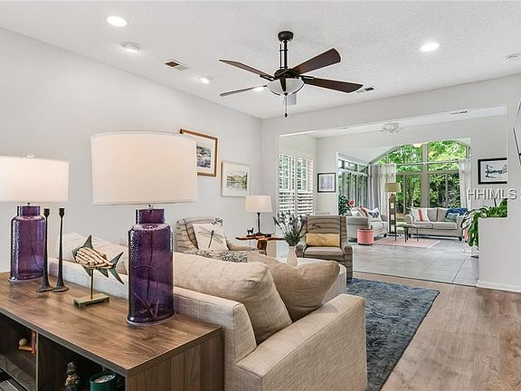 Looking for a 3 bedroom home in Sun City - this is it! You will LOVE this expanded, beautiful updated kitchen with custom white cabinets, Stainless Steel appliances, Granite counters and open breakfast bar plus pantry. This home is inviting with plenty of space, New LVP floors, plantation shutters and a lovely Carolina Room looking out to a not-too-close lagoon plus nice size yard backing to a landscape berm offering privacy, a fire pit, and brick patio. Beaufort Co taxes