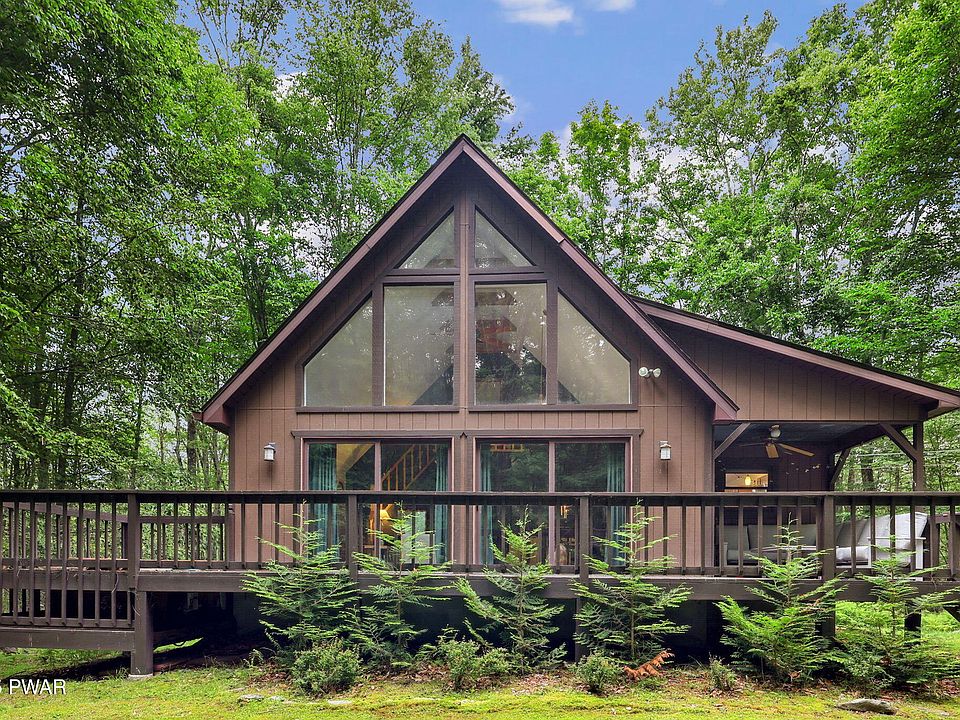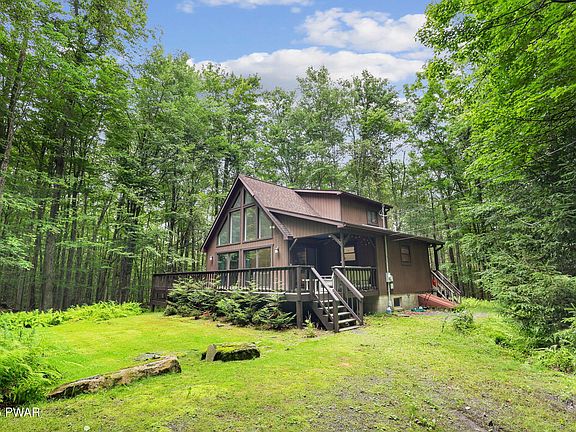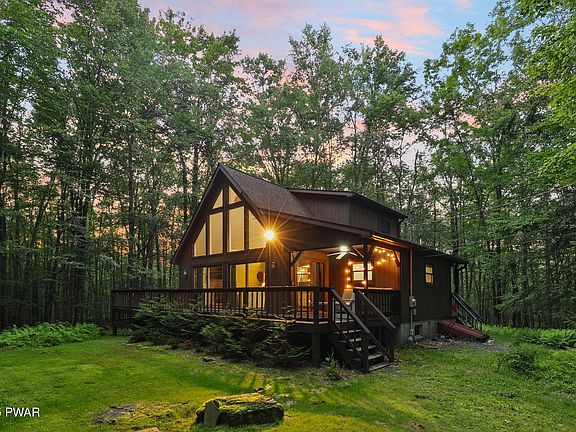 Located in the heart of Cobbs Lake Preserve, this impressive chalet offers unmatched privacy, natural beauty, and direct access to a lifestyle built around the outdoors. Set on over two acres of wooded land with no neighbors in sight, this property is surrounded by nothing but trees and nature. The community itself offers over 400 acres of private hunting land, a peaceful lake with a beach, a playground, hiking trails, a rifle quarry, and a pavilion for gatherings. Inside, the home is bright and welcoming with large chalet-style windows that let in an abundance of natural light. The hardwood floors throughout add warmth and character, while the newly painted interior gives it a fresh, move-in-ready feel. Both bathrooms have been fully renovated with high-end finishes and feature modern LED Bluetooth speaker vent fans with color-changing lights. A cozy propane fireplace anchors the living room, which also includes a mini split unit for efficient additional heating and cooling year-round. The primary bedroom features its own private balcony overlooking the trees, offering beautiful wooded views and a peaceful place to unwind. The home includes an unfinished basement, offering excellent potential for future expansion, added living space, or storage. Step outside to a spacious front deck where you can enjoy the peaceful sounds of the woods and watch wildlife pass by. A new roof was installed in 2020, making this home as practical as it is charming. Priced aggressively and ready to show, this is your chance to own a well-maintained retreat where nature, recreation, and comfort come together.