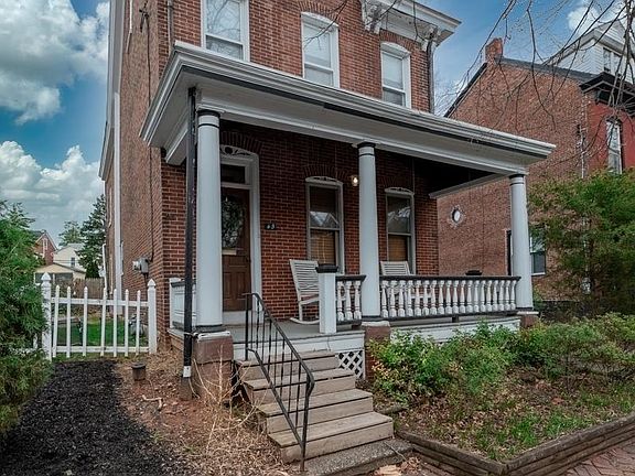If you like homes with character, this red brick Victorian built in 1900 is for you. Stained glass, pocket doors, built-in hutches, and chestnut woodwork with rosette corners, scrolls, vintage brass hardware, and hardwood floors. The main living area includes the living room, parlor, dining room and updated kitchen with mudroom and full bathroom with a tub. The second floor has 4 bedrooms, a sizeable walk-in closet and full bath. Through one of the bedrooms is a covered porch overlooking the side yard. The third floor is a sizable bonus room that can be used as a fifth bedroom. Access to the large basement and laundry can be found out back through a set of bilco doors. A brand new water heater and natural gas furnace were installed in 2023 and all new sewer lines out to the street main were installed in 2024. The 2-story, 2-car garage with a handyman's workshop is accessible from the driveway. Very walkable to the shops and restaurants on High Street and Memorial Park one block away.