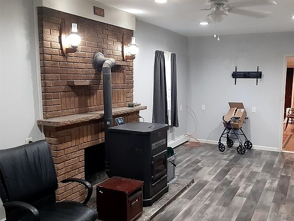 The main residence features a thoughtfully designed layout with three comfortable bedrooms, providing ample space for relaxation and rest. The heart of the home is a cozy living area, complete with a pellet stove that not only adds warmth but also creates a rustic and inviting atmosphere.